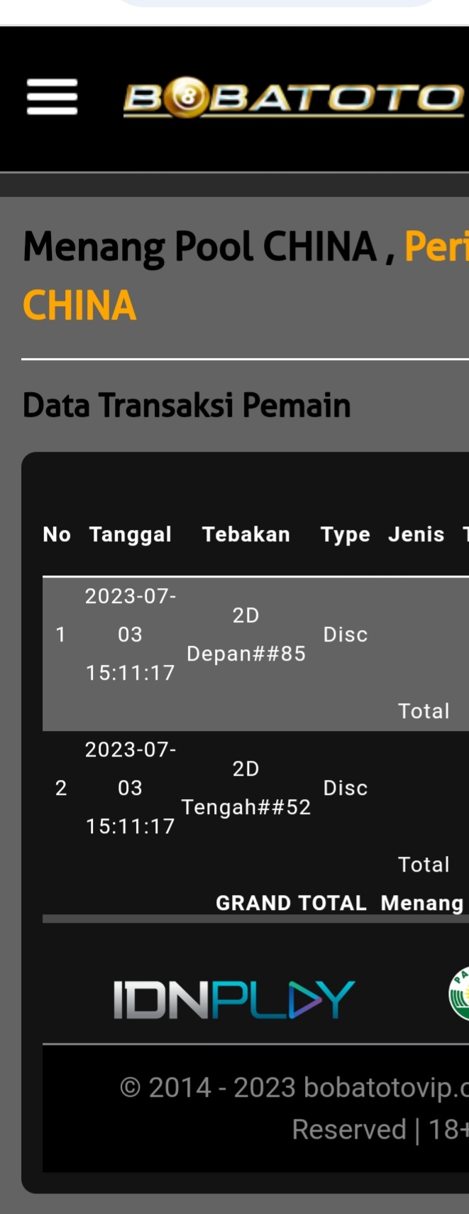 Selamat Bergabung kembali Master Togeller dalam room MASTER CHINAPOOLS.