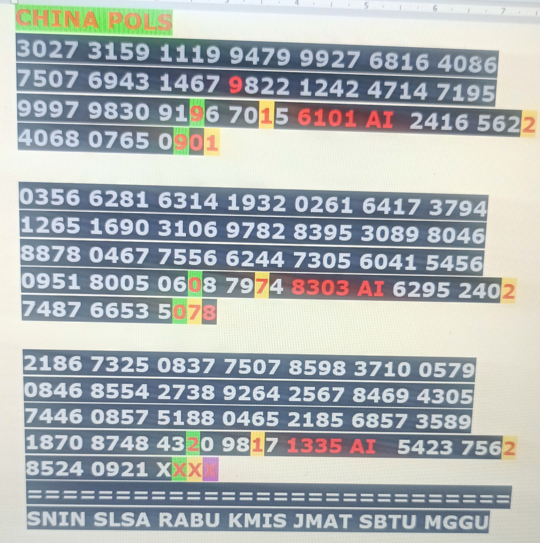 MASTER CHINAPOOLS Sabtu, 06-12-2025 Merupakan Prediksi Otomatis yang menggabungkan Metode Kalender Togel Dengan Rumus-rumus kontrol yang sudah terbukti keakuratanya.Gunakan Aplikasi Rekap untuk mendapatkan LN TOP. Harap Maklum Jika kadang meleset MASTER CHINAPOOLS kita. Jadikan ini sebagai perbandingan saja dan tetap UPS