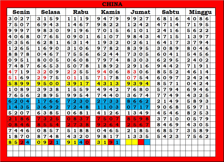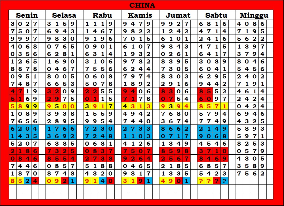 MASTER CHINAPOOLS Sabtu, 06-12-2025 Merupakan Prediksi Otomatis yang menggabungkan Metode Kalender Togel Dengan Rumus-rumus kontrol yang sudah terbukti keakuratanya.Gunakan Aplikasi Rekap untuk mendapatkan LN TOP. Harap Maklum Jika kadang meleset MASTER CHINAPOOLS kita. Jadikan ini sebagai perbandingan saja dan tetap UPS