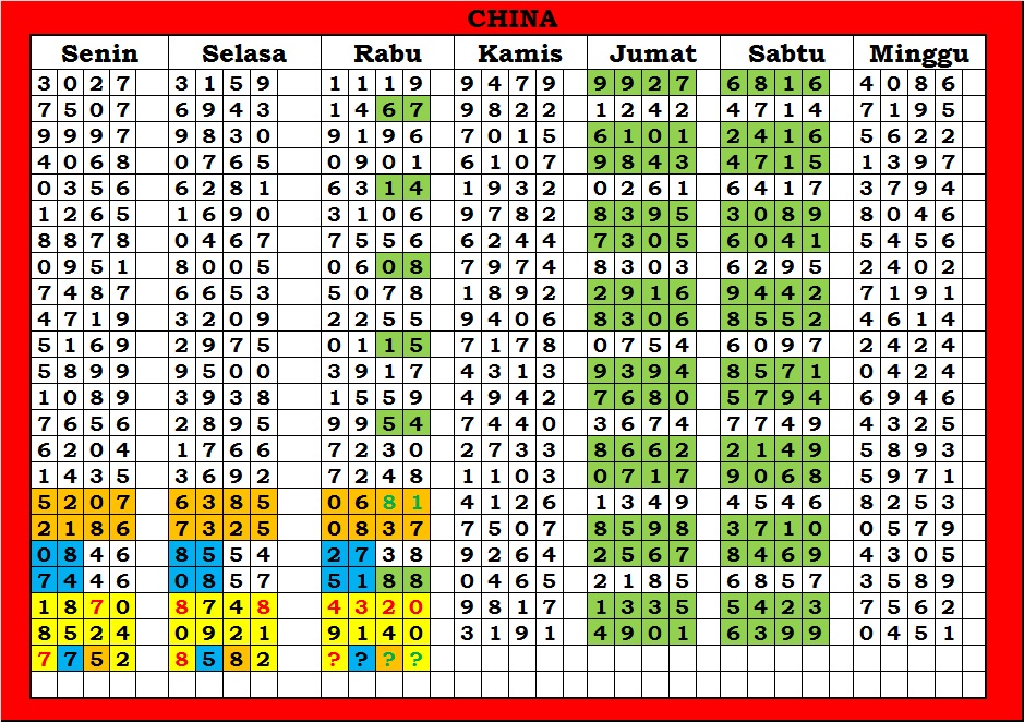 MASTER CHINAPOOLS Sabtu, 06-12-2025 Merupakan Prediksi Otomatis yang menggabungkan Metode Kalender Togel Dengan Rumus-rumus kontrol yang sudah terbukti keakuratanya.Gunakan Aplikasi Rekap untuk mendapatkan LN TOP. Harap Maklum Jika kadang meleset MASTER CHINAPOOLS kita. Jadikan ini sebagai perbandingan saja dan tetap UPS