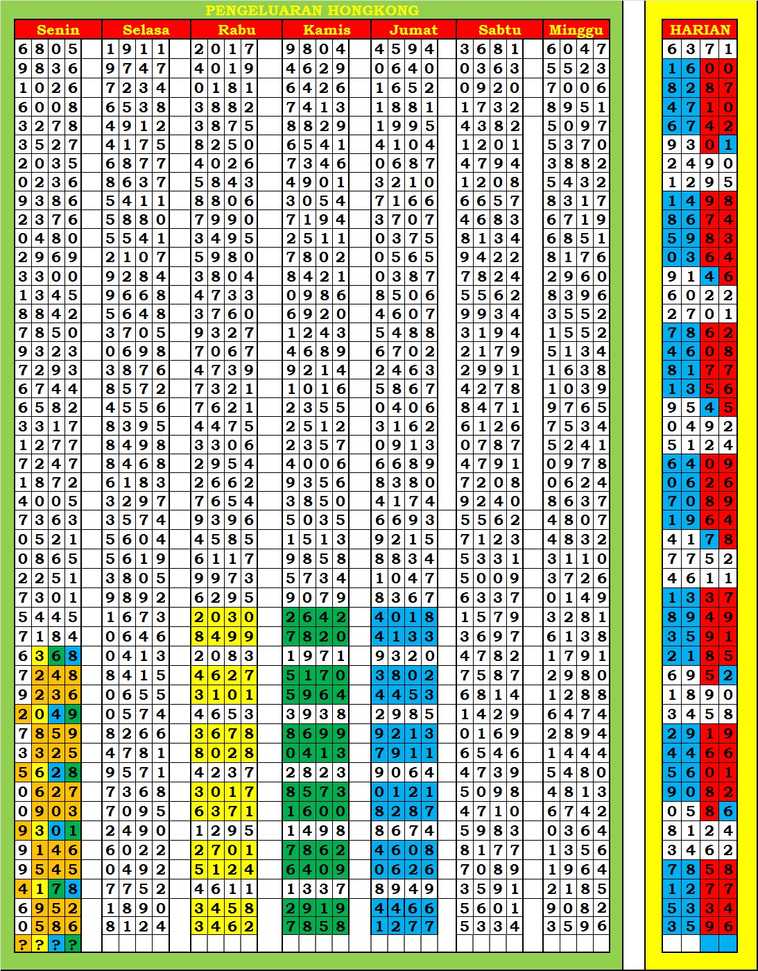 | TABEL DATA HK 6D VERSI HARIAN |