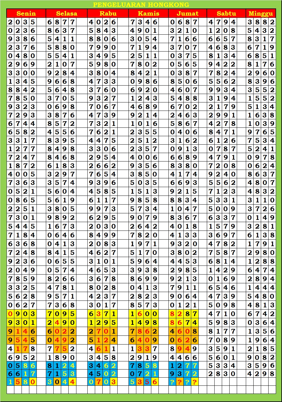 | TABEL DATA HKG VERSI 6D TAHUN 2010 HINGGA SEKARANG |