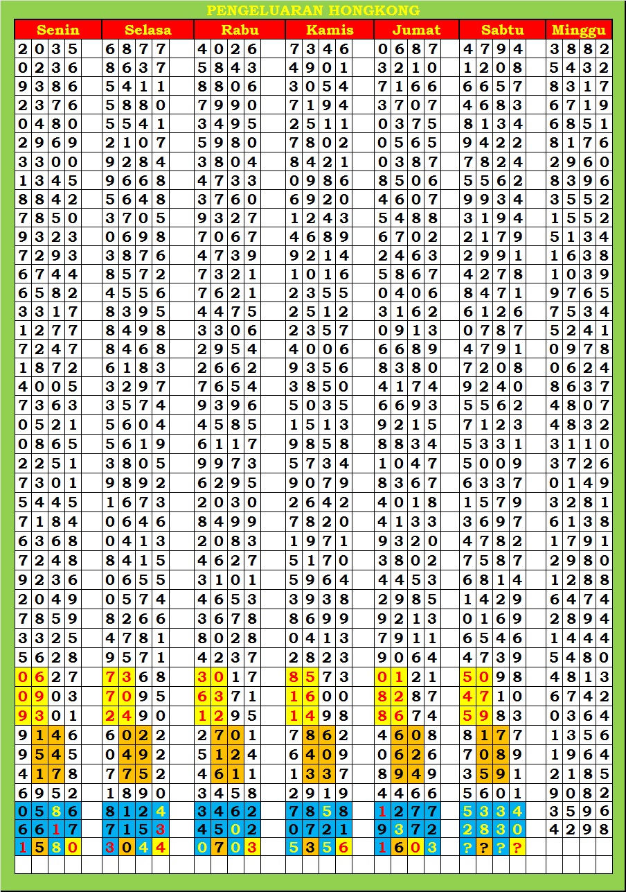 | TABEL DATA HKG VERSI 6D TAHUN 2010 HINGGA SEKARANG |