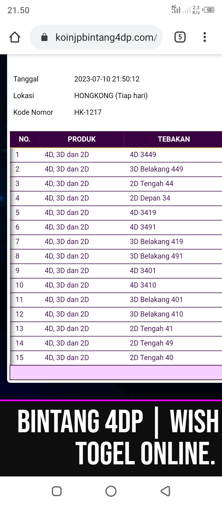 | PAITO WARNA HONGKONG HARIAN 4D |