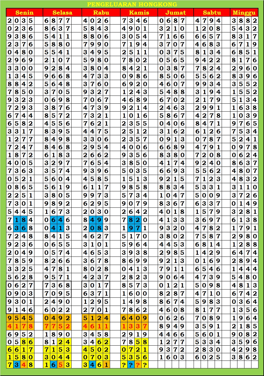 | TABEL DATA HKG VERSI 6D TAHUN 2010 HINGGA SEKARANG |