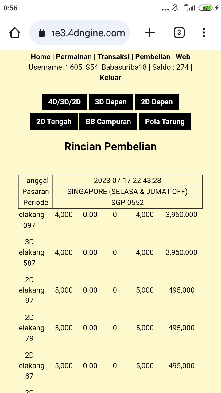 Angka pecahnya pun ada kalau 62 dari sisa angka semalam ada tapi