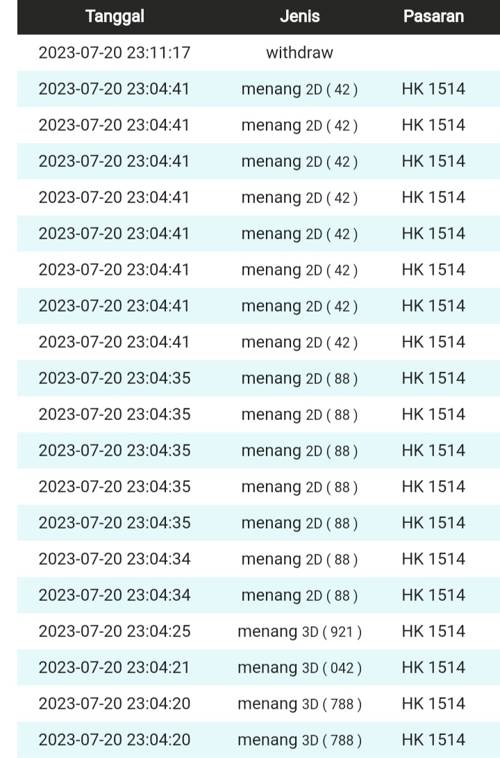 | TABEL DATA HK VERSI 4D TAHUN 2004 HINGGA SEKARANG |