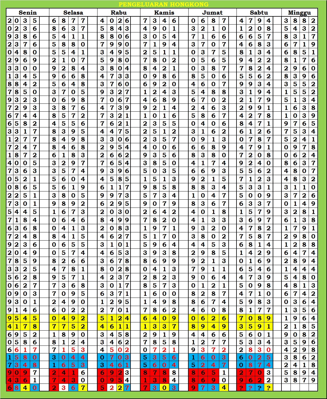 | TABEL DATA HKG VERSI 6D TAHUN 2010 HINGGA SEKARANG |