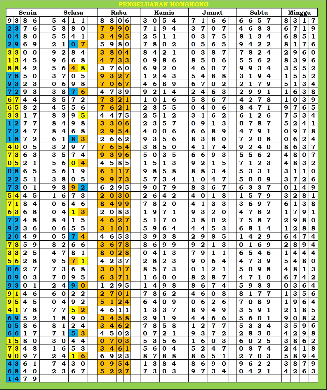 | TABEL DATA HKG VERSI 6D TAHUN 2010 HINGGA SEKARANG |