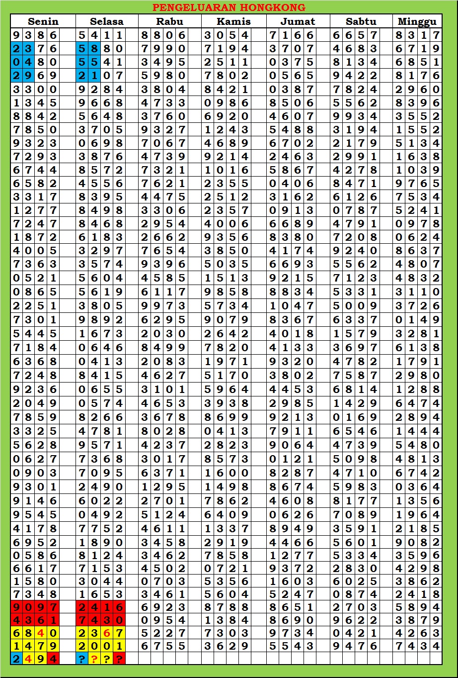 | TABEL DATA HKG VERSI 6D TAHUN 2010 HINGGA SEKARANG |