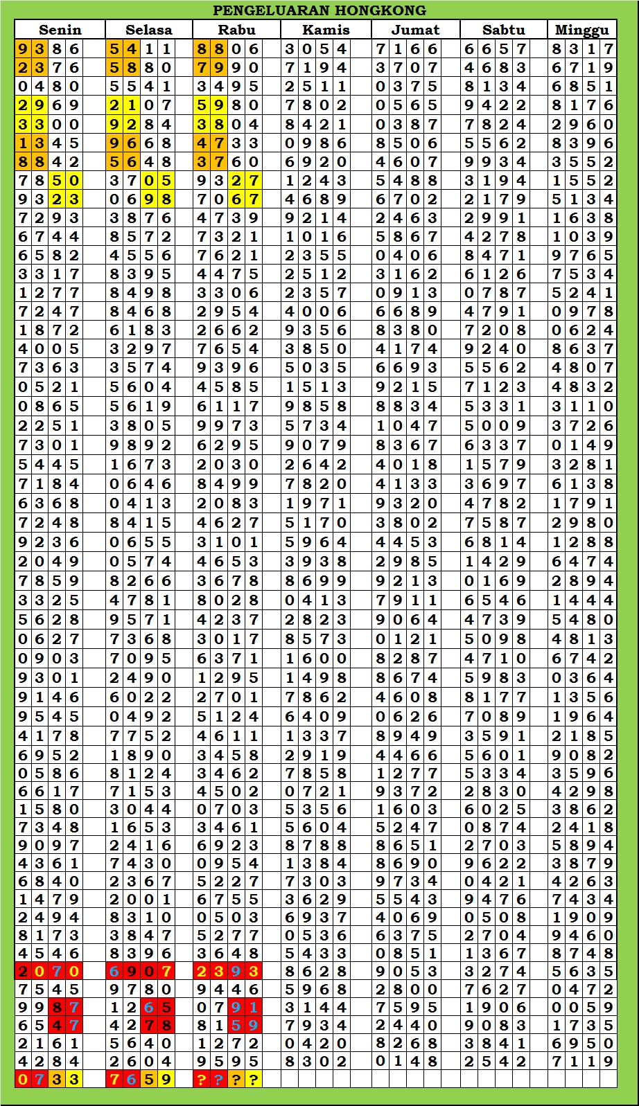 | TABEL DATA HKG VERSI 6D TAHUN 2010 HINGGA SEKARANG |