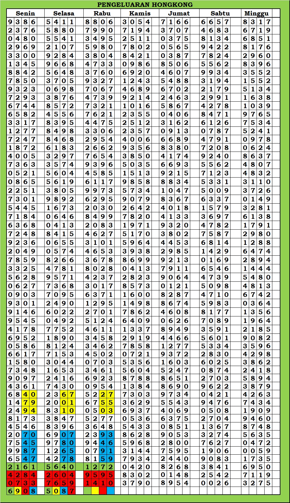 | TABEL DATA HKG VERSI 6D TAHUN 2010 HINGGA SEKARANG |