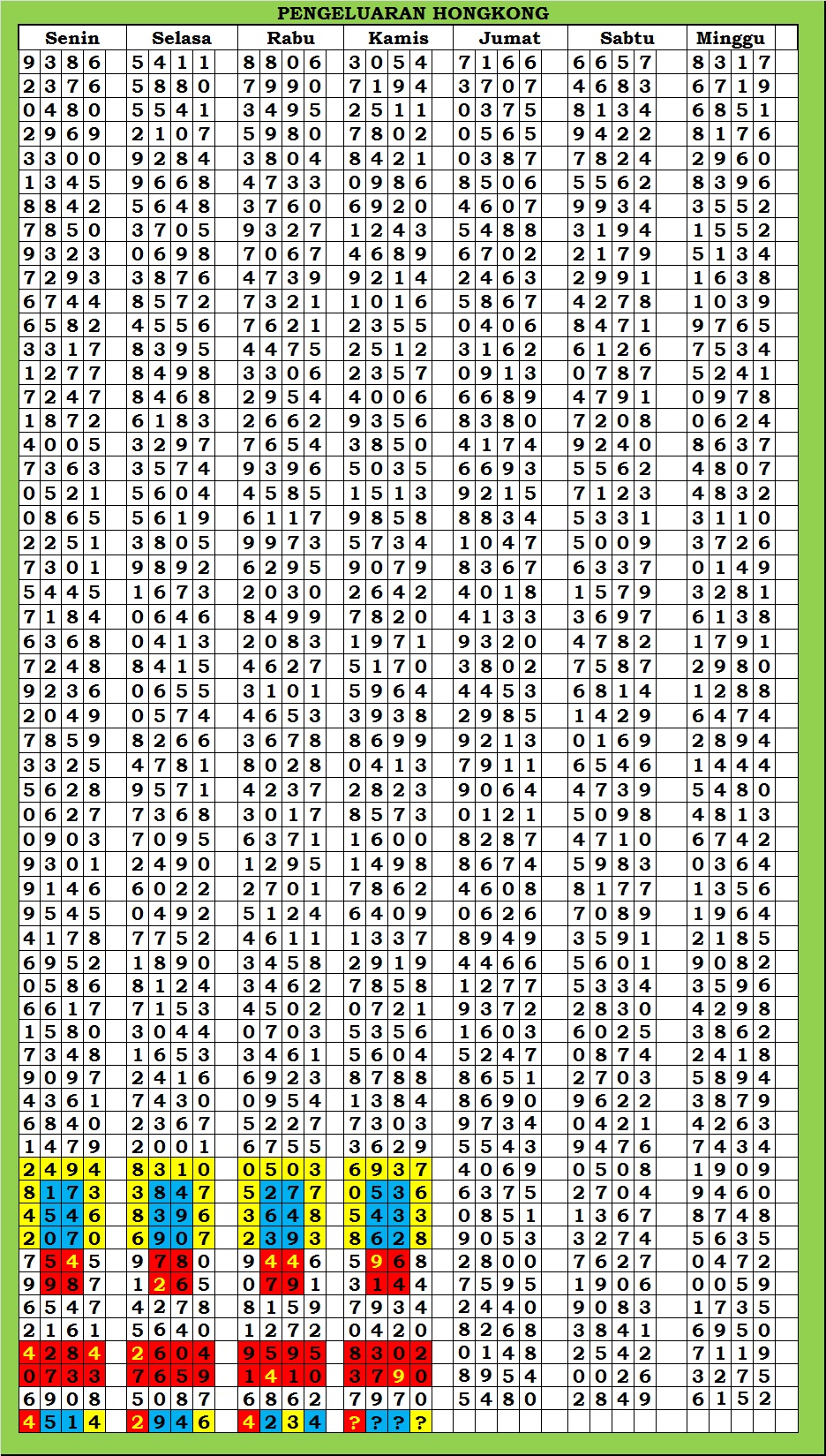 | TABEL DATA HK 6D VERSI HARIAN |