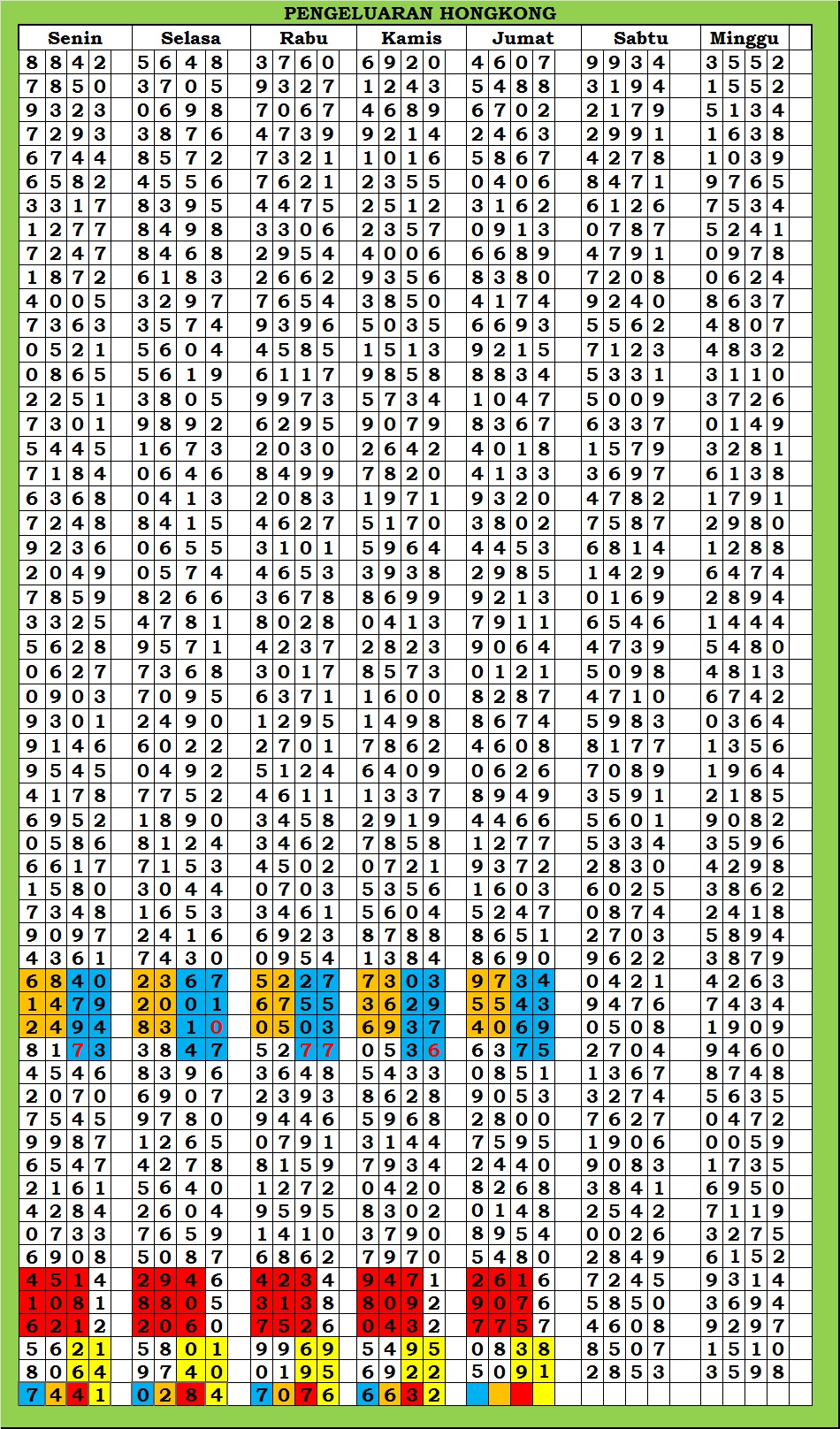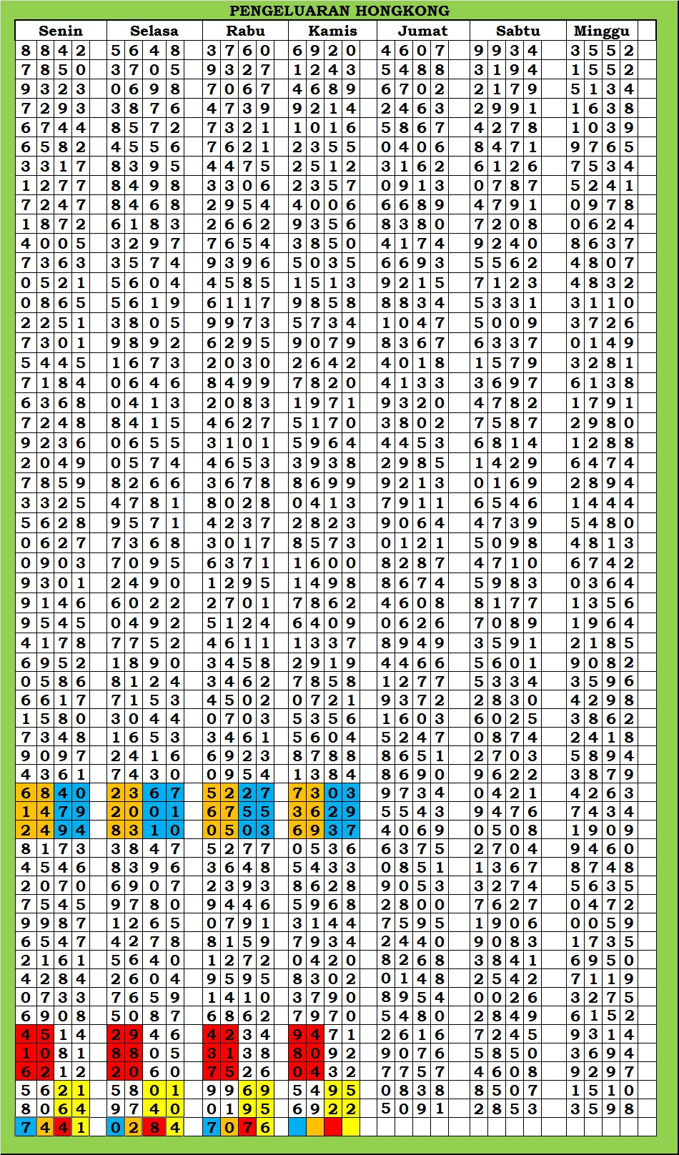 | TABEL DATA HKG VERSI 6D TAHUN 2010 HINGGA SEKARANG |