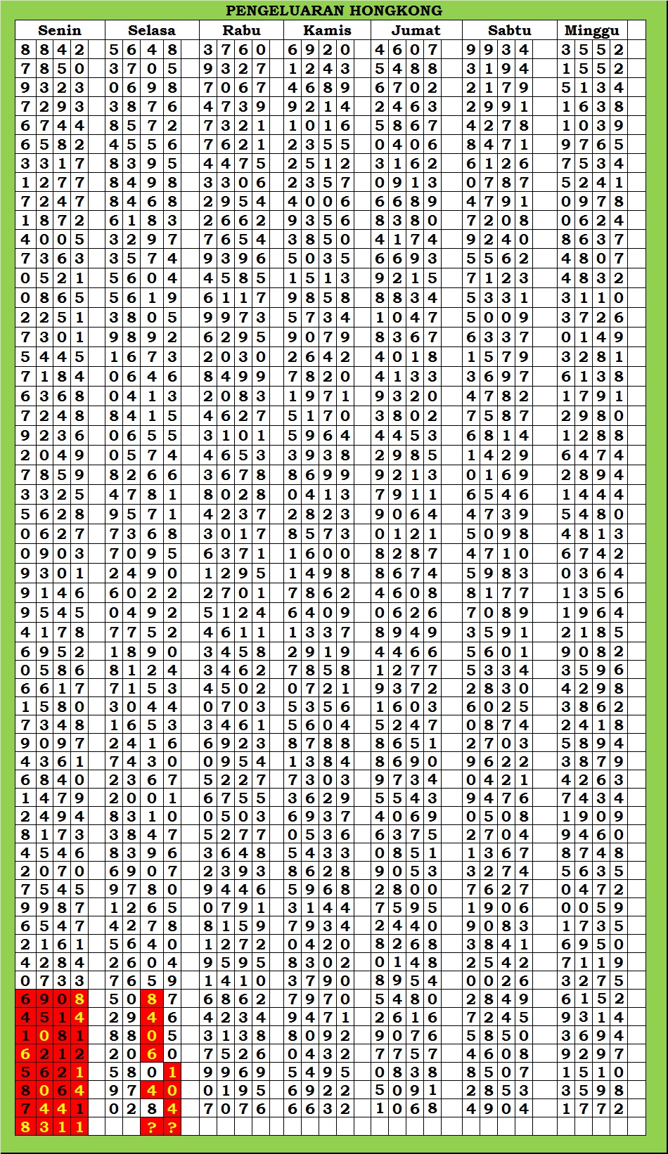 | TABEL DATA HKG VERSI 6D TAHUN 2010 HINGGA SEKARANG |