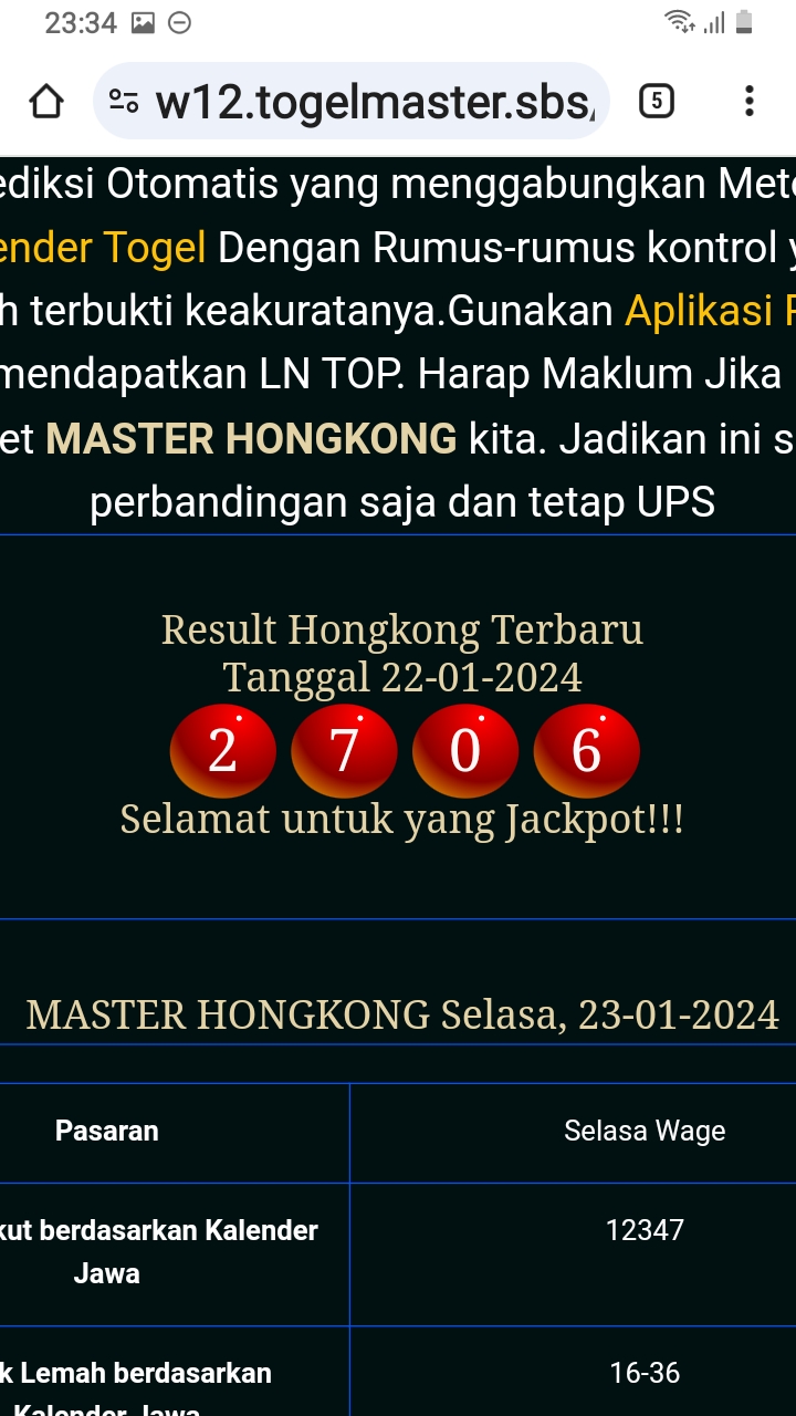 MASTER HONGKONG Senin, 22-12-2025 Merupakan Prediksi Otomatis yang menggabungkan Metode Kalender Togel Dengan Rumus-rumus kontrol yang sudah terbukti keakuratanya.Gunakan Aplikasi Rekap untuk mendapatkan LN TOP. Harap Maklum Jika kadang meleset MASTER HONGKONG kita. Jadikan ini sebagai perbandingan saja dan tetap UPS
