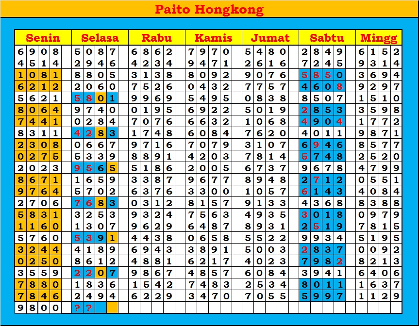 MASTER HONGKONG Jumat, 05-12-2025 Merupakan Prediksi Otomatis yang menggabungkan Metode Kalender Togel Dengan Rumus-rumus kontrol yang sudah terbukti keakuratanya.Gunakan Aplikasi Rekap untuk mendapatkan LN TOP. Harap Maklum Jika kadang meleset MASTER HONGKONG kita. Jadikan ini sebagai perbandingan saja dan tetap UPS