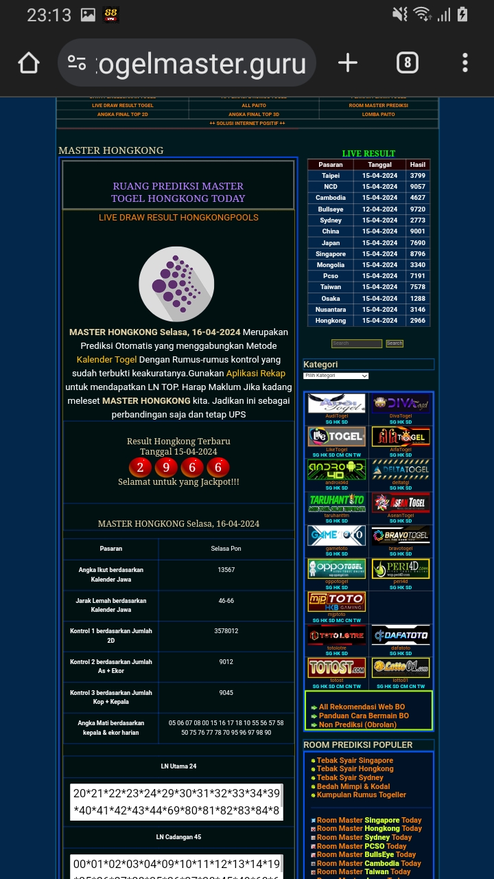 MASTER HONGKONG Jumat, 05-12-2025 Merupakan Prediksi Otomatis yang menggabungkan Metode Kalender Togel Dengan Rumus-rumus kontrol yang sudah terbukti keakuratanya.Gunakan Aplikasi Rekap untuk mendapatkan LN TOP. Harap Maklum Jika kadang meleset MASTER HONGKONG kita. Jadikan ini sebagai perbandingan saja dan tetap UPS