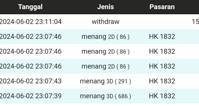 | TABEL DATA HKG VERSI 6D TAHUN 2010 HINGGA SEKARANG |