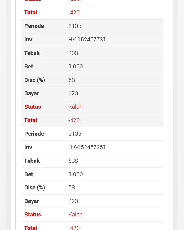 semua postingan komentar SARA, politik, saling menghujat serta saling merendahkan antara prediktor satu dengan yang lainnya jika kami lagi OL mohon maaf langsung kami hapus dan jika telah diperingatkan masih mengulang kami lock datanya