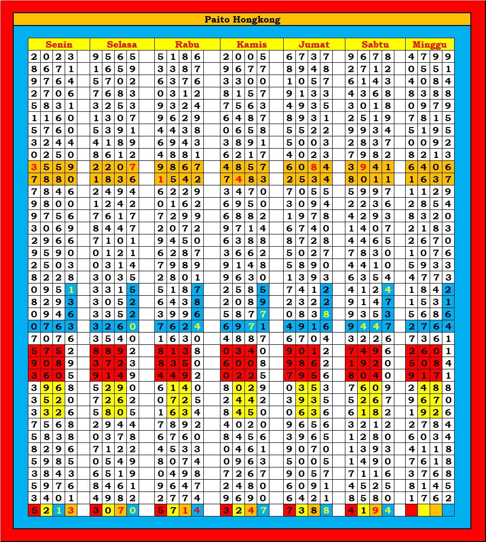 MASTER HONGKONG Minggu, 09-11-2025 Merupakan Prediksi Otomatis yang menggabungkan Metode Kalender Togel Dengan Rumus-rumus kontrol yang sudah terbukti keakuratanya.Gunakan Aplikasi Rekap untuk mendapatkan LN TOP. Harap Maklum Jika kadang meleset MASTER HONGKONG kita. Jadikan ini sebagai perbandingan saja dan tetap UPS