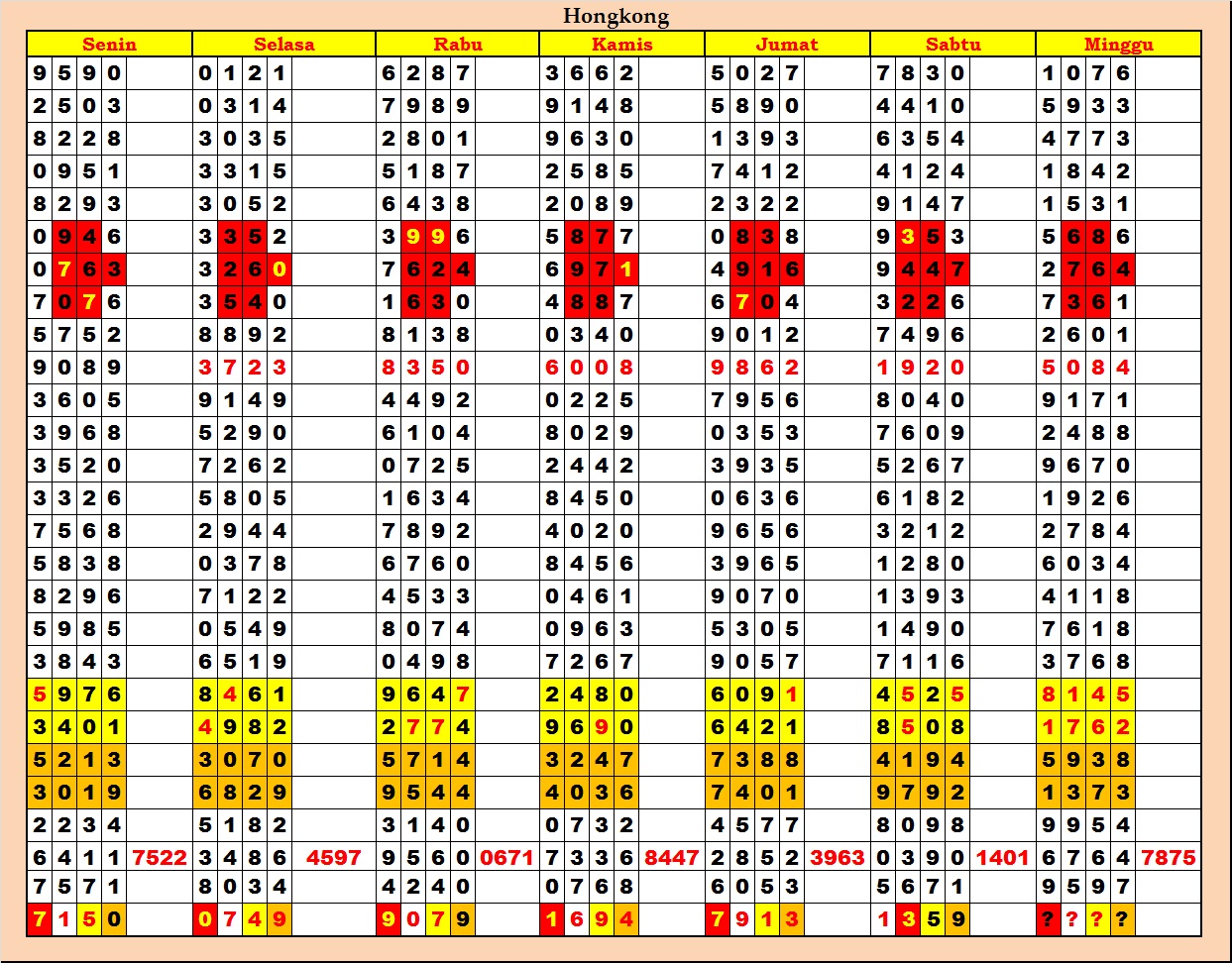 MASTER HONGKONG Minggu, 07-12-2025 Merupakan Prediksi Otomatis yang menggabungkan Metode Kalender Togel Dengan Rumus-rumus kontrol yang sudah terbukti keakuratanya.Gunakan Aplikasi Rekap untuk mendapatkan LN TOP. Harap Maklum Jika kadang meleset MASTER HONGKONG kita. Jadikan ini sebagai perbandingan saja dan tetap UPS
