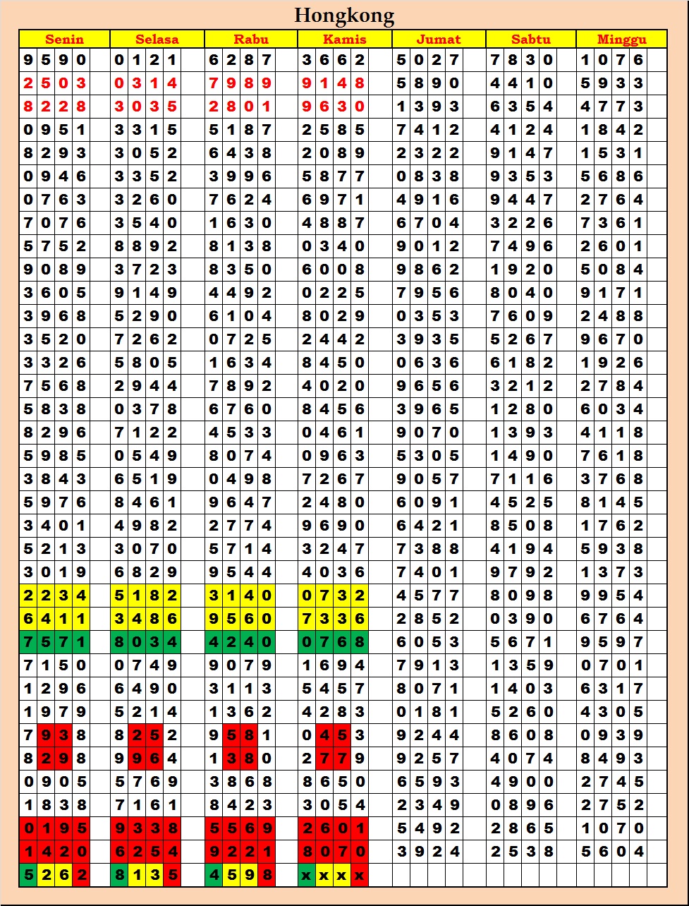 MASTER HONGKONG Minggu, 07-12-2025 Merupakan Prediksi Otomatis yang menggabungkan Metode Kalender Togel Dengan Rumus-rumus kontrol yang sudah terbukti keakuratanya.Gunakan Aplikasi Rekap untuk mendapatkan LN TOP. Harap Maklum Jika kadang meleset MASTER HONGKONG kita. Jadikan ini sebagai perbandingan saja dan tetap UPS