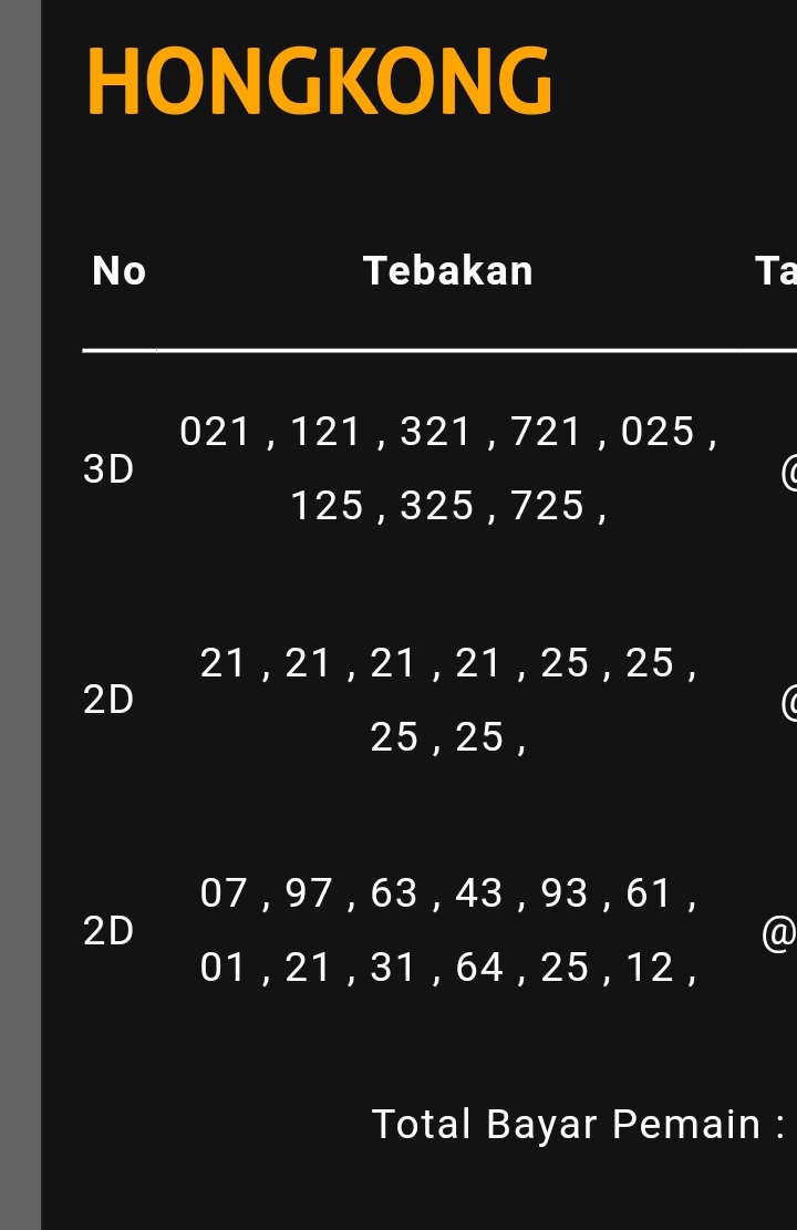| TABEL FORMULA DATA HONGKONG |