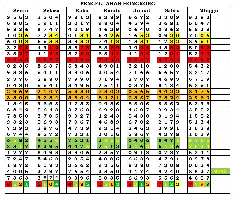 MASTER HONGKONG Senin, 12-01-2026 Merupakan Prediksi Otomatis yang menggabungkan Metode Kalender Togel Dengan Rumus-rumus kontrol yang sudah terbukti keakuratanya.Gunakan Aplikasi Rekap untuk mendapatkan LN TOP. Harap Maklum Jika kadang meleset MASTER HONGKONG kita. Jadikan ini sebagai perbandingan saja dan tetap UPS