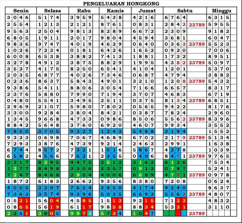 MASTER HONGKONG Sabtu, 10-01-2026 Merupakan Prediksi Otomatis yang menggabungkan Metode Kalender Togel Dengan Rumus-rumus kontrol yang sudah terbukti keakuratanya.Gunakan Aplikasi Rekap untuk mendapatkan LN TOP. Harap Maklum Jika kadang meleset MASTER HONGKONG kita. Jadikan ini sebagai perbandingan saja dan tetap UPS