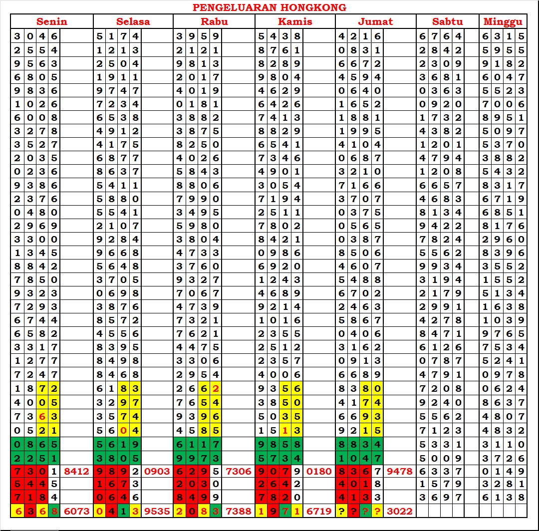 MASTER HONGKONG Sabtu, 03-01-2026 Merupakan Prediksi Otomatis yang menggabungkan Metode Kalender Togel Dengan Rumus-rumus kontrol yang sudah terbukti keakuratanya.Gunakan Aplikasi Rekap untuk mendapatkan LN TOP. Harap Maklum Jika kadang meleset MASTER HONGKONG kita. Jadikan ini sebagai perbandingan saja dan tetap UPS