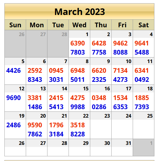 Prediksi Ini Berubah secara otomatis sesuai hari dan result pasaran masing-masing. Untuk melihat prediksi sebelumnya klik tombol nomor hitam diatas