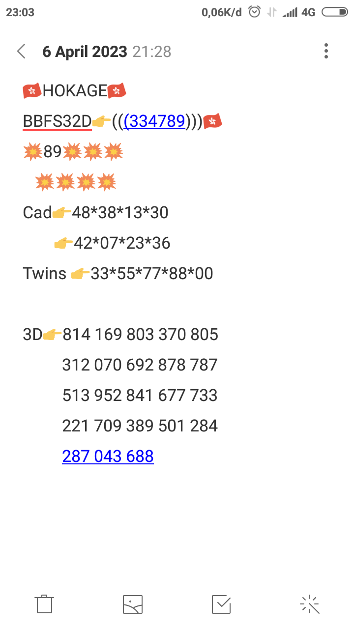 Prediksi Ini Berubah secara otomatis sesuai hari dan result pasaran masing-masing. Untuk melihat prediksi sebelumnya klik tombol nomor hitam diatas