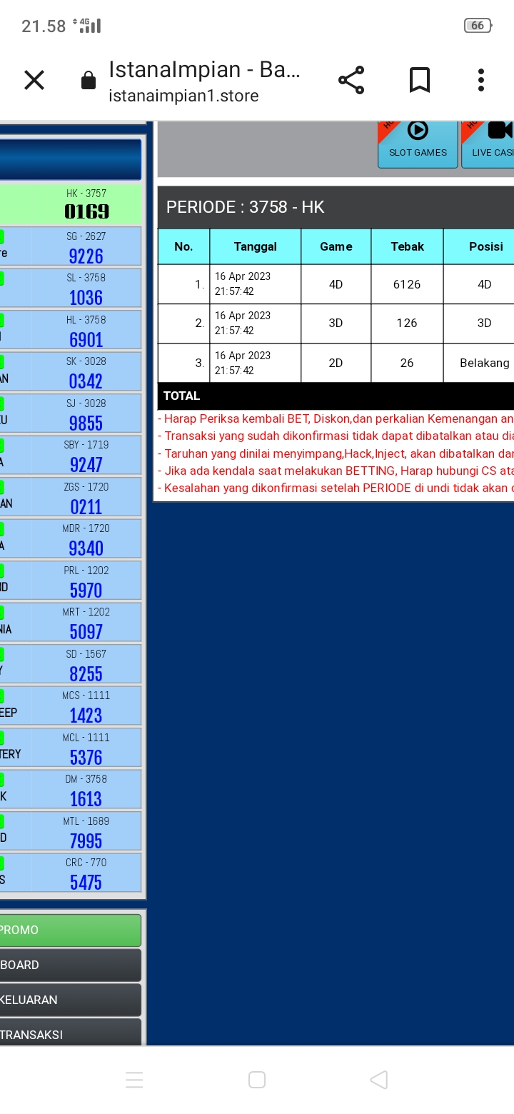 semua postingan komentar SARA, politik, saling menghujat serta saling merendahkan antara prediktor satu dengan yang lainnya jika kami lagi OL mohon maaf langsung kami hapus dan jika telah diperingatkan masih mengulang kami lock datanya