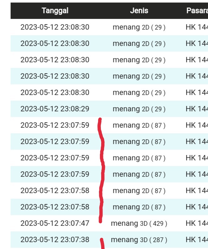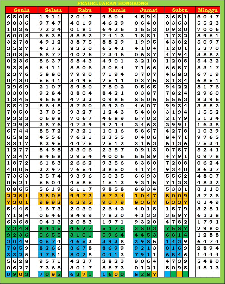 | TABEL DATA HKG VERSI 6D TAHUN 2010 HINGGA SEKARANG |