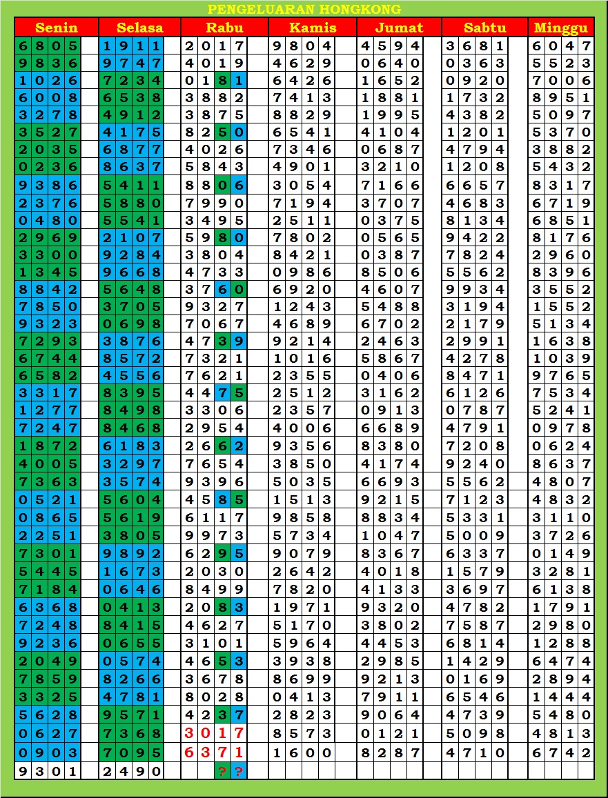 | TABEL DATA HKG VERSI 6D TAHUN 2010 HINGGA SEKARANG |