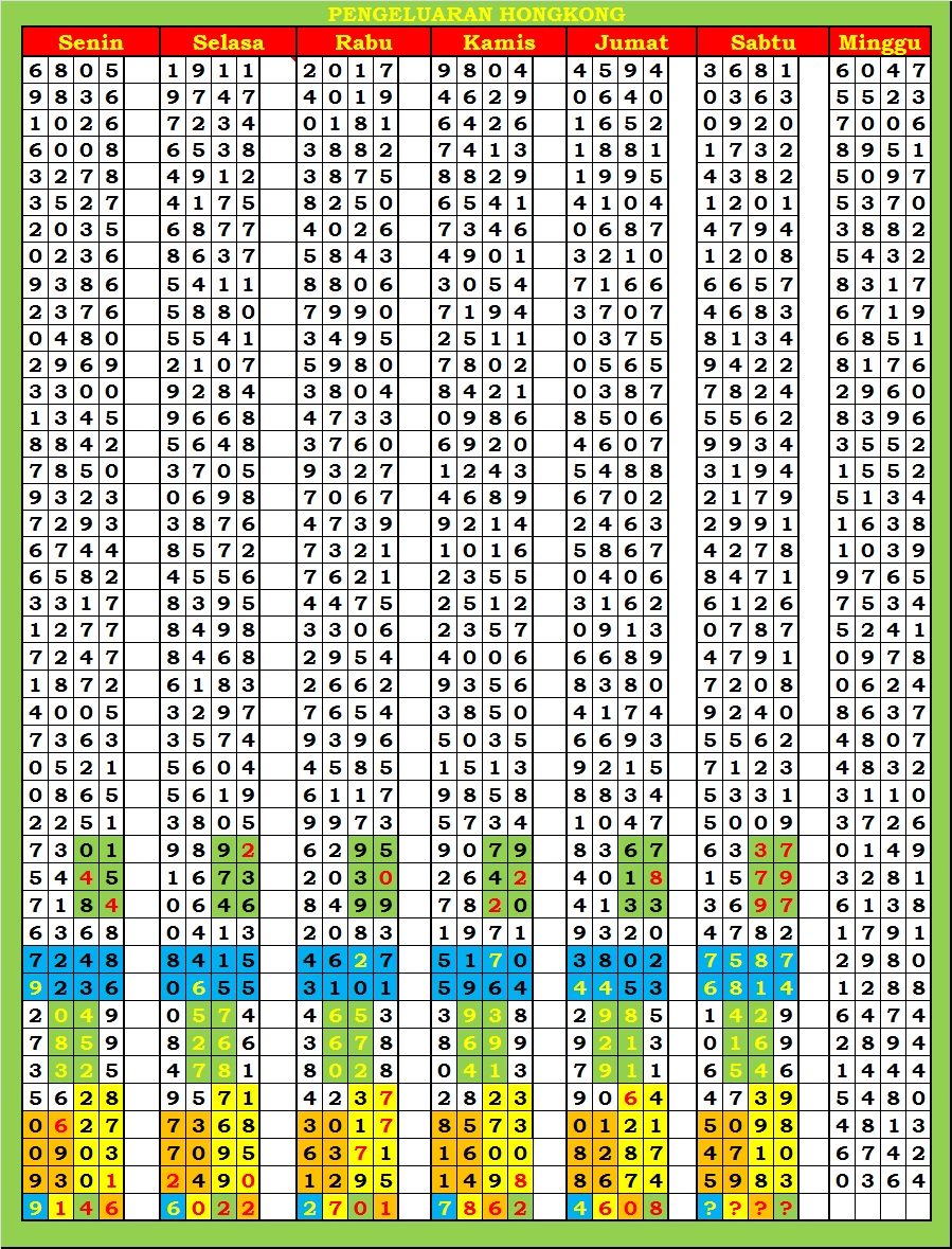 | TABEL DATA HKG VERSI 6D TAHUN 2010 HINGGA SEKARANG |