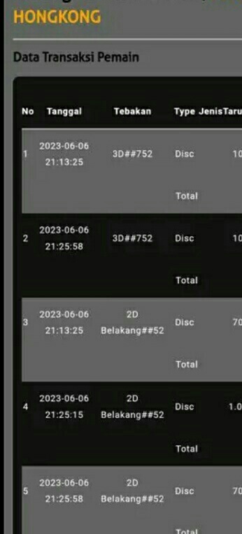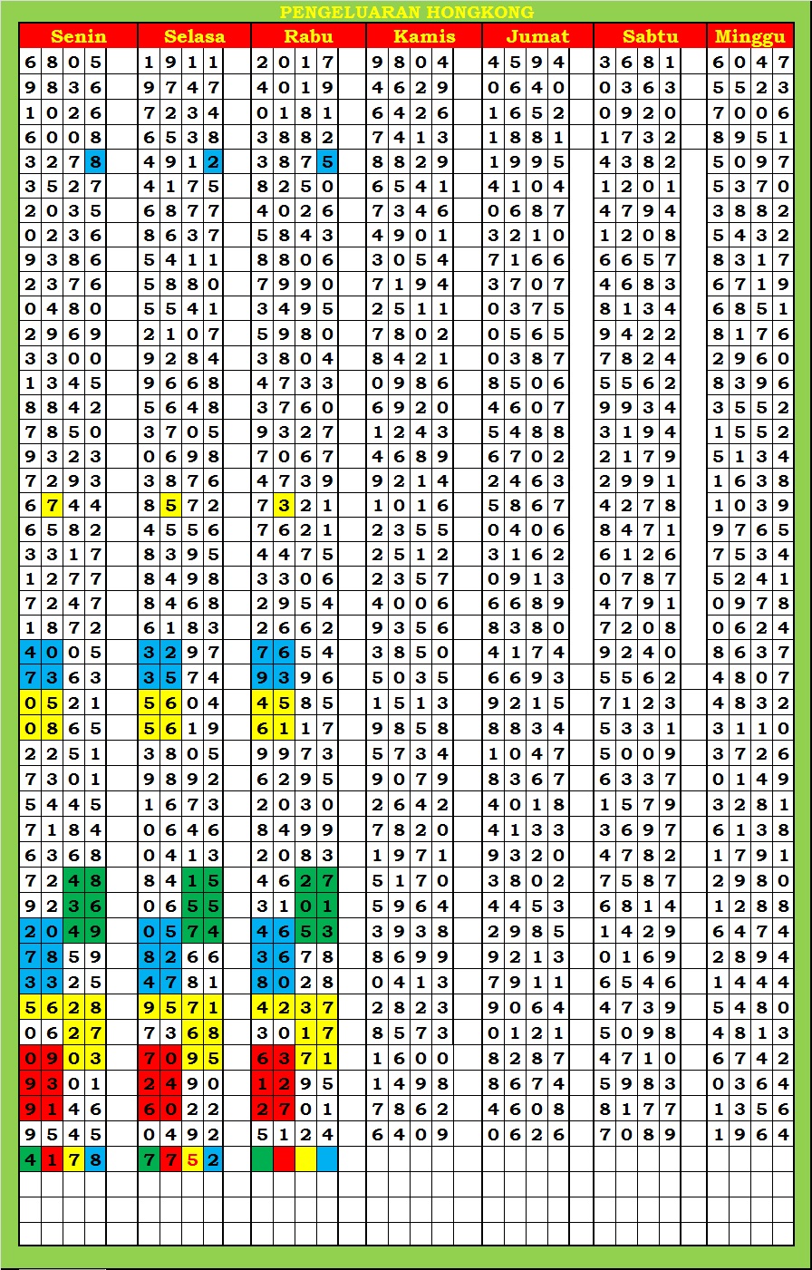 | TABEL DATA HKG VERSI 6D TAHUN 2010 HINGGA SEKARANG |