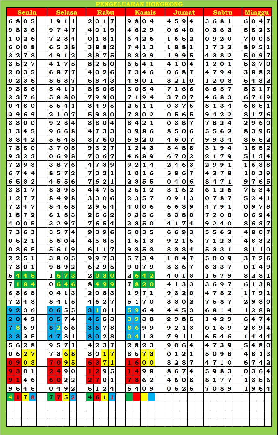 | TABEL DATA HKG VERSI 6D TAHUN 2010 HINGGA SEKARANG |