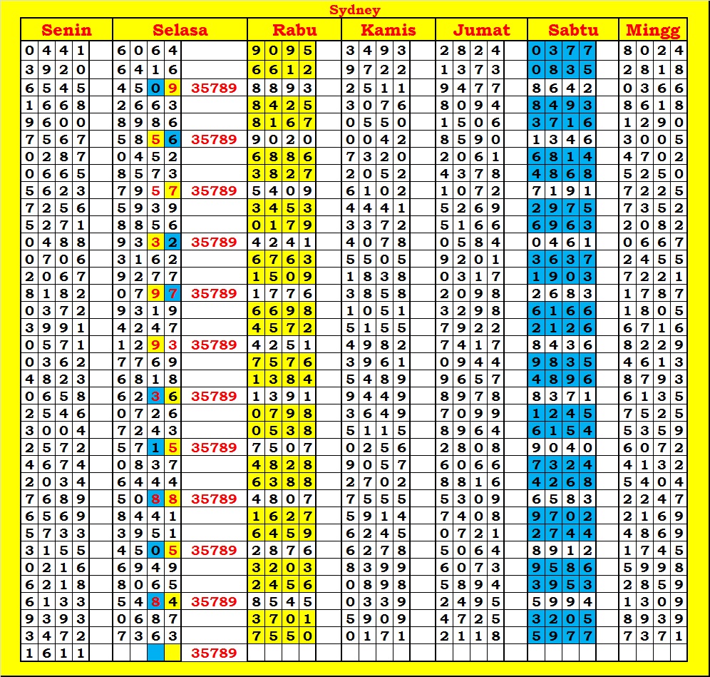| TABEL DATA SYDNEY 6D VERSI HARIAN |