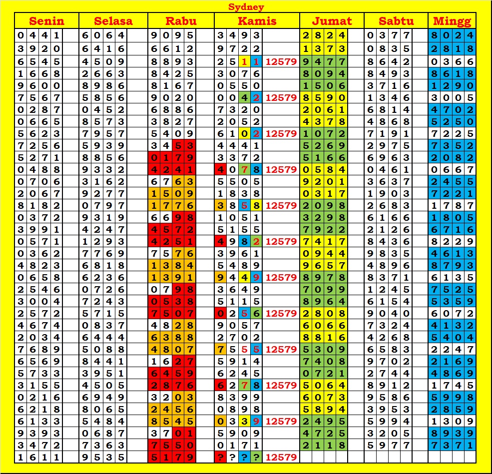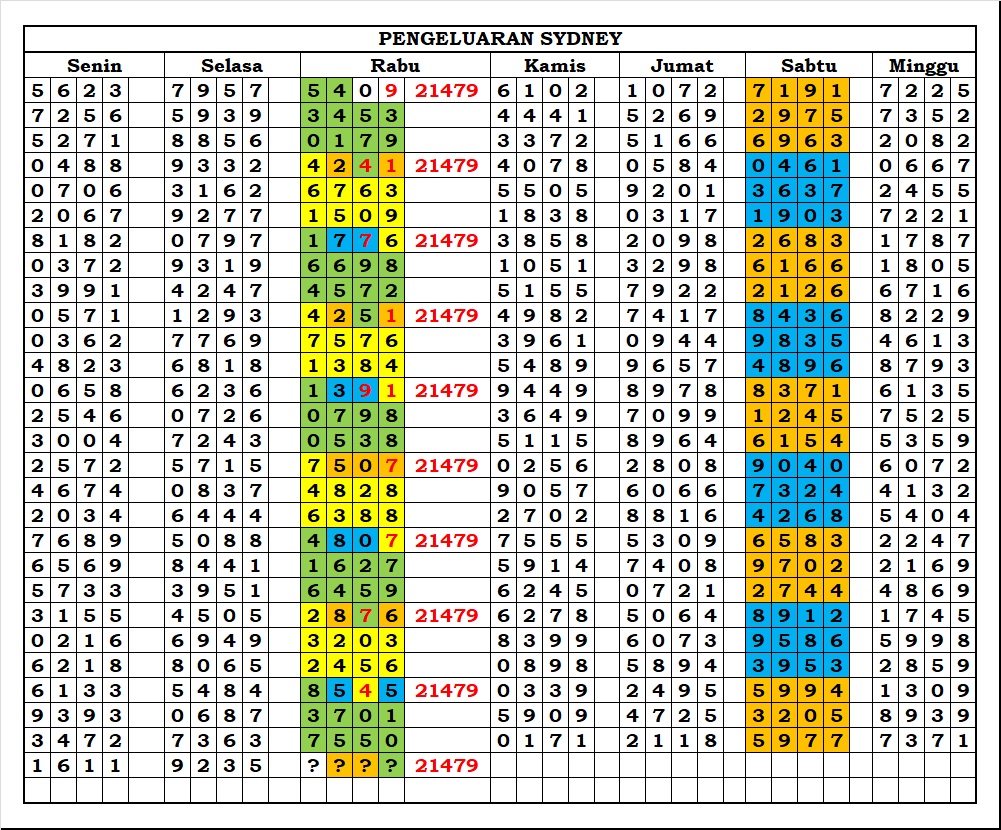 | TABEL DATA SYDNEY 6D VERSI HARIAN |