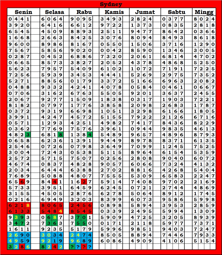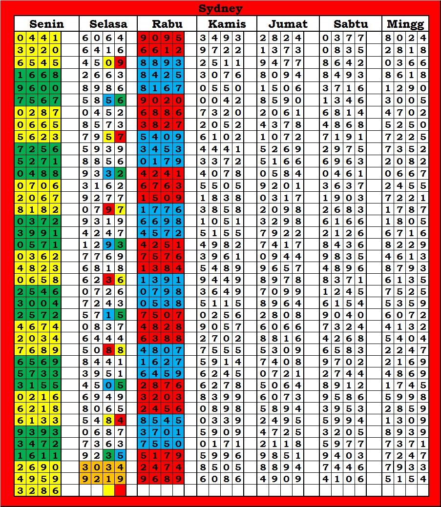 | TABEL DATA SYDNEY 6D VERSI HARIAN |