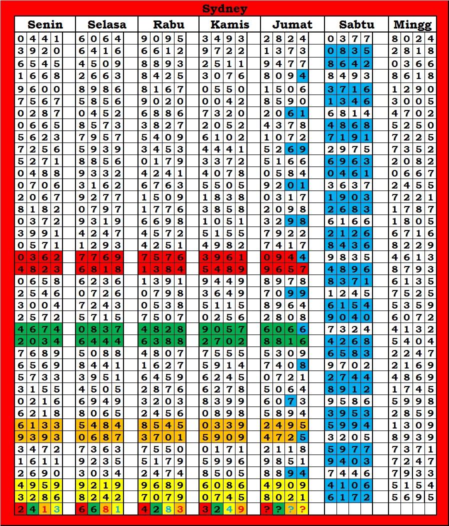 | TABEL DATA SYDNEY 6D VERSI HARIAN |