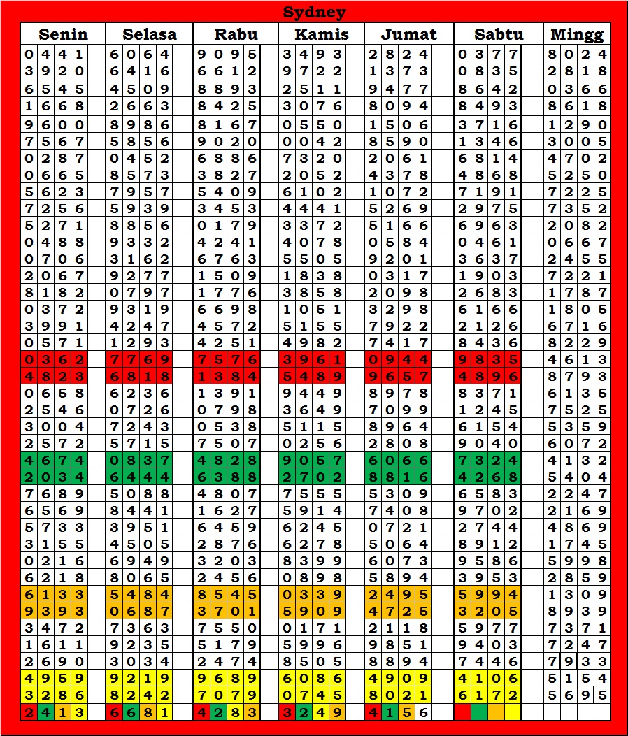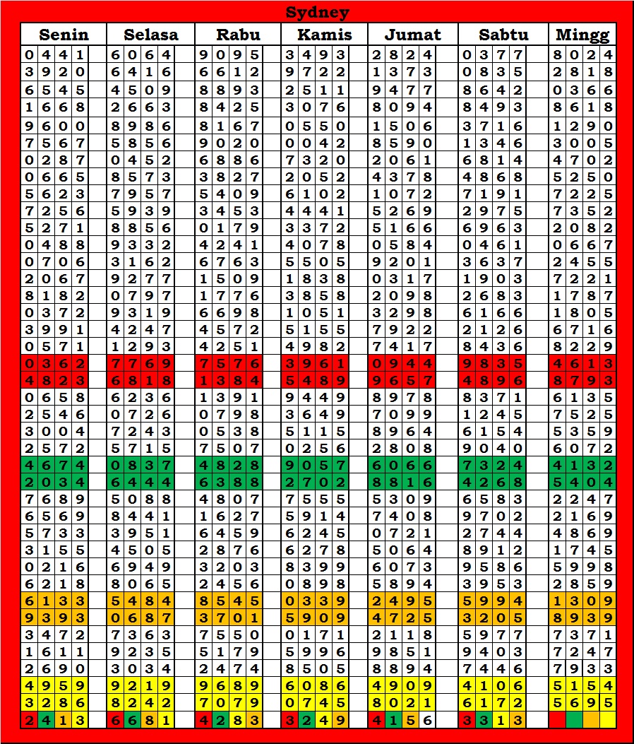 | TABEL DATA SYDNEY 6D VERSI HARIAN |