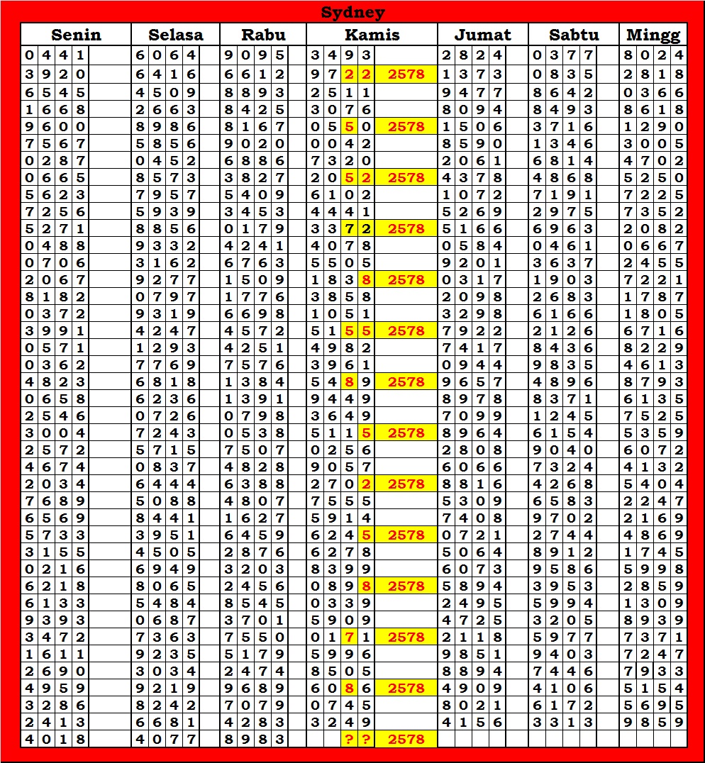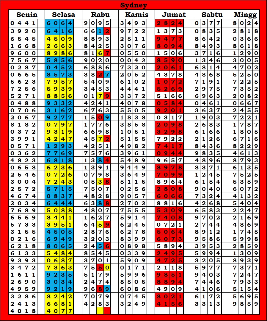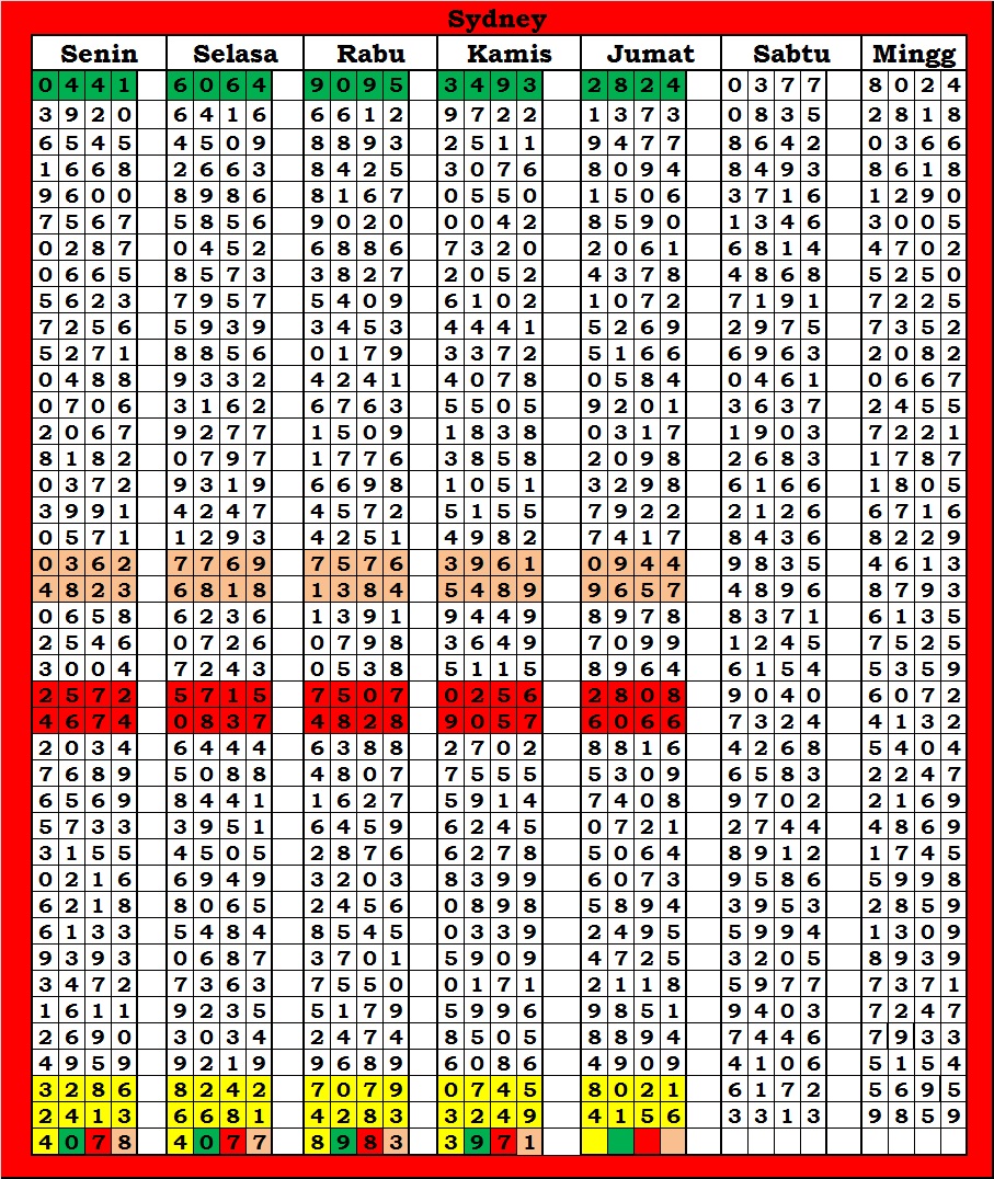| TABEL DATA SYDNEY 6D VERSI HARIAN |