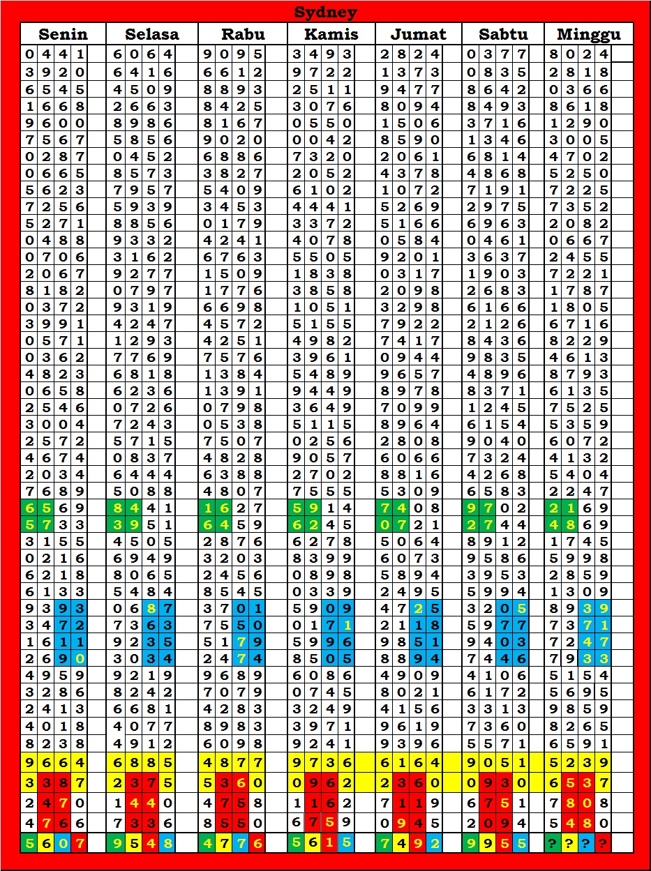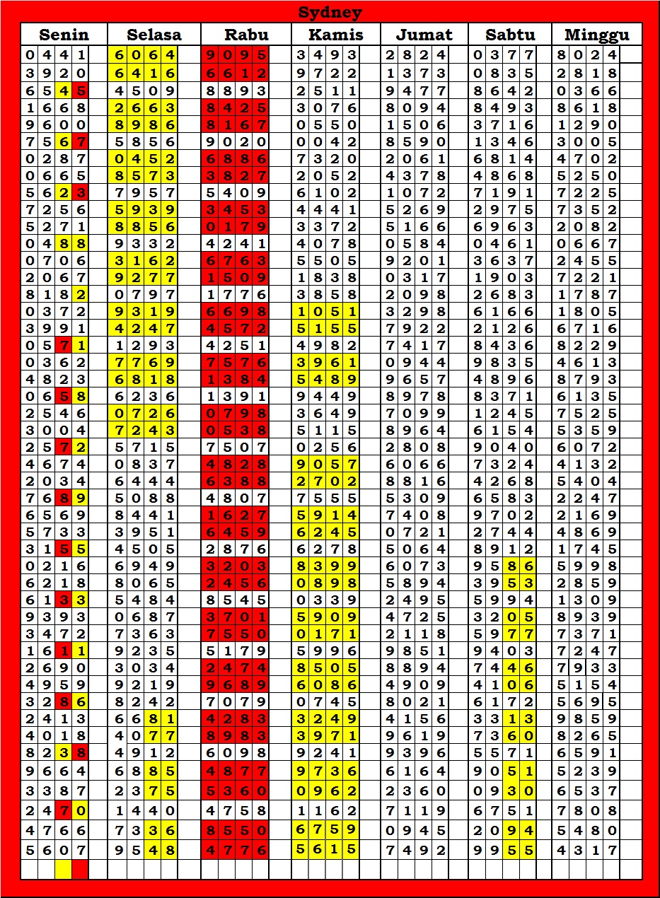 | TABEL DATA SYDNEY 6D VERSI HARIAN |