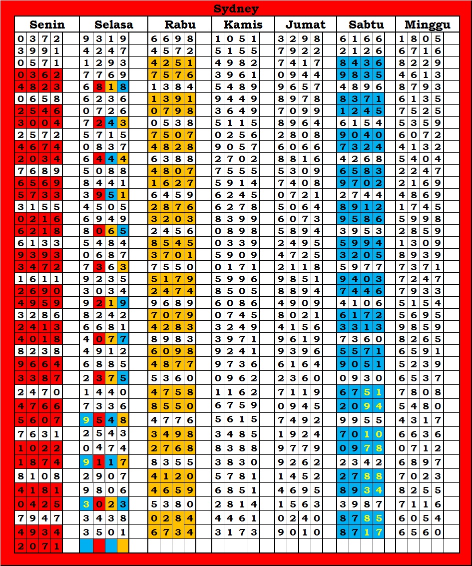 | TABEL DATA SYDNEY 6D VERSI HARIAN |