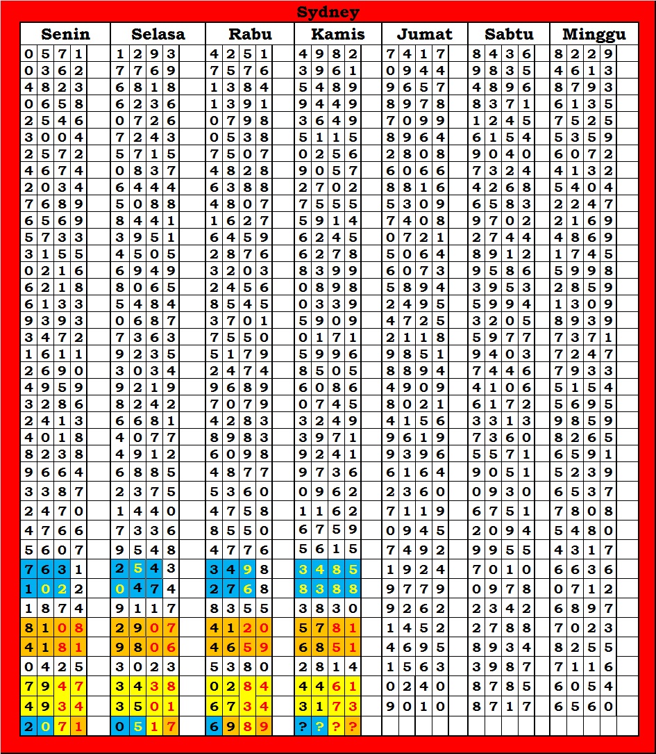 | TABEL DATA SYDNEY 6D VERSI HARIAN |