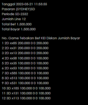 MASTER SYDNEY Selasa, 23-12-2025 Merupakan Prediksi Otomatis yang menggabungkan Metode Kalender Togel Dengan Rumus-rumus kontrol yang sudah terbukti keakuratanya.Gunakan Aplikasi Rekap untuk mendapatkan LN TOP. Harap Maklum Jika kadang meleset MASTER SYDNEY kita. Jadikan ini sebagai perbandingan saja dan tetap UPS