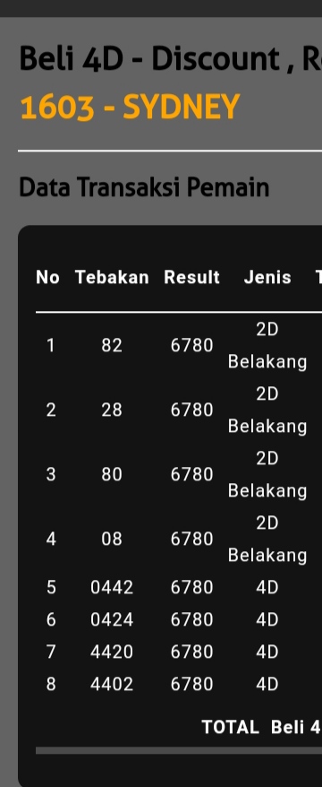 | TABEL DATA SYDNEY 6D VERSI HARIAN |